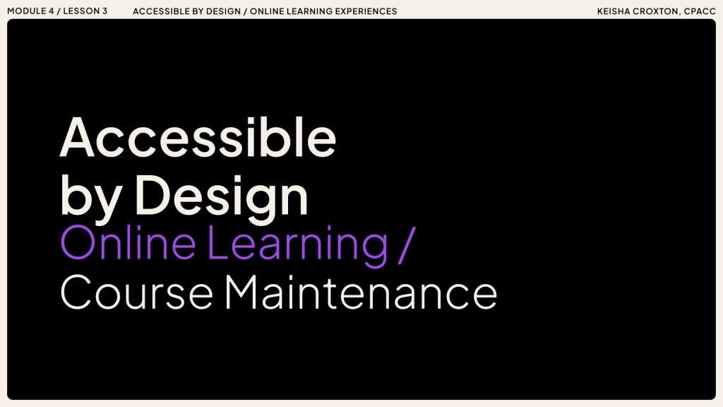 - Ensure accessibility is baked into course maintenance workflows.