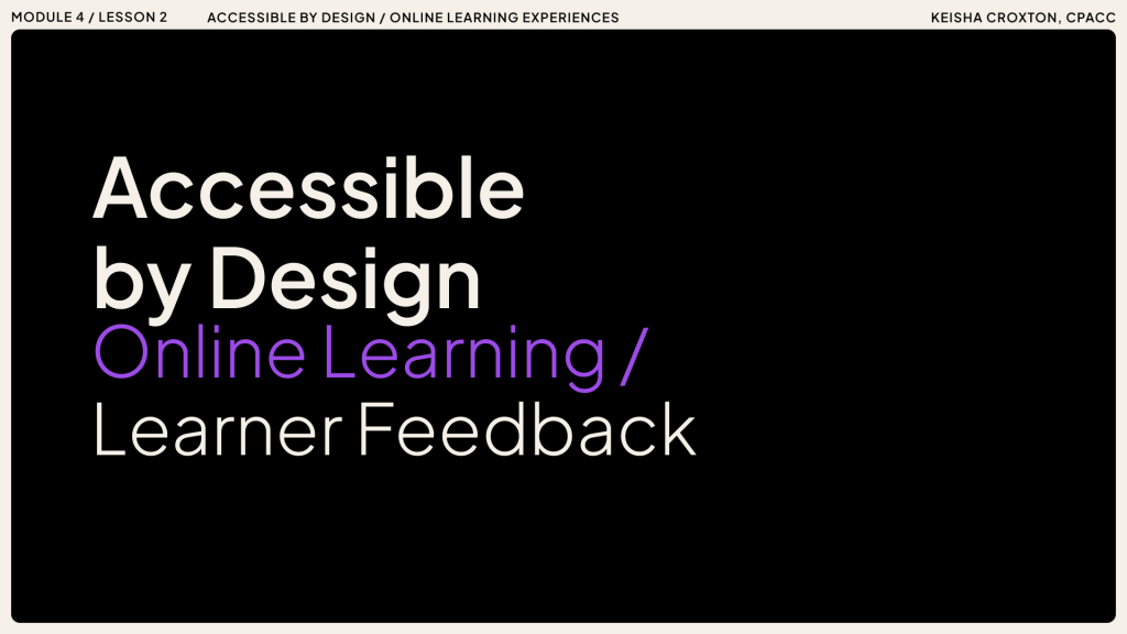 Accessibility is an evolving process, and learner feedback plays a key role in identifying real-world challenges. In this lesson, you’ll explore how to collect meaningful feedback about the learner experience, from mid-course surveys to anonymous accessibility reports. You’ll also learn how to respond to this feedback constructively and align it with UDL principles to foster a more inclusive learning environment.